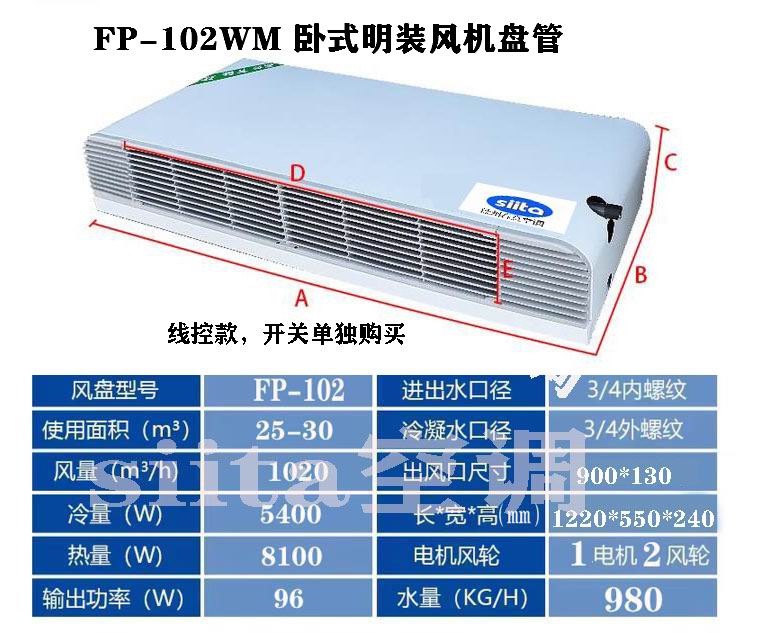 FP-102WM 是中央空調(diào)中適配中大面積空間的臥式明裝風(fēng)機(jī)盤管,額外風(fēng)量 1020m3/h,主打大風(fēng)量、高換熱效率,適配 25-30㎡空間,無需吊頂可直接吊裝,機(jī)身規(guī)劃統(tǒng)籌實用性與裝飾適配性,是住所大空間、中小型工作 / 商業(yè)區(qū)域的主力選型,統(tǒng)籌溫控精準(zhǔn)度與裝置方便性。