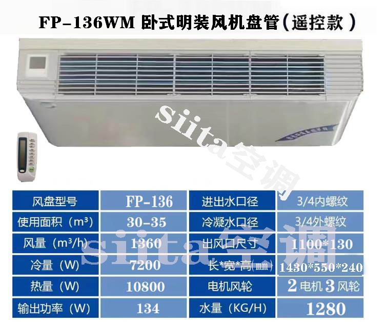 FP-136WM是德州春意臥式明裝風機盤管的常見型號之一,屬于中央空調末端設備,適用于中小型空間。以下是其核心性能參數和典型應用場景的詳細介紹: